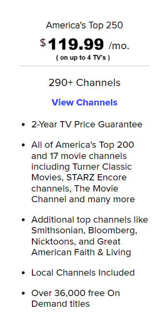 Some blackout restrictions do apply to channels in the Multi Sport Package. Requires subscription to America's Top 120 PLUS or higher programming. Pricing and packages are subject to change without notice. Not responsible for Typographical or informational errors.